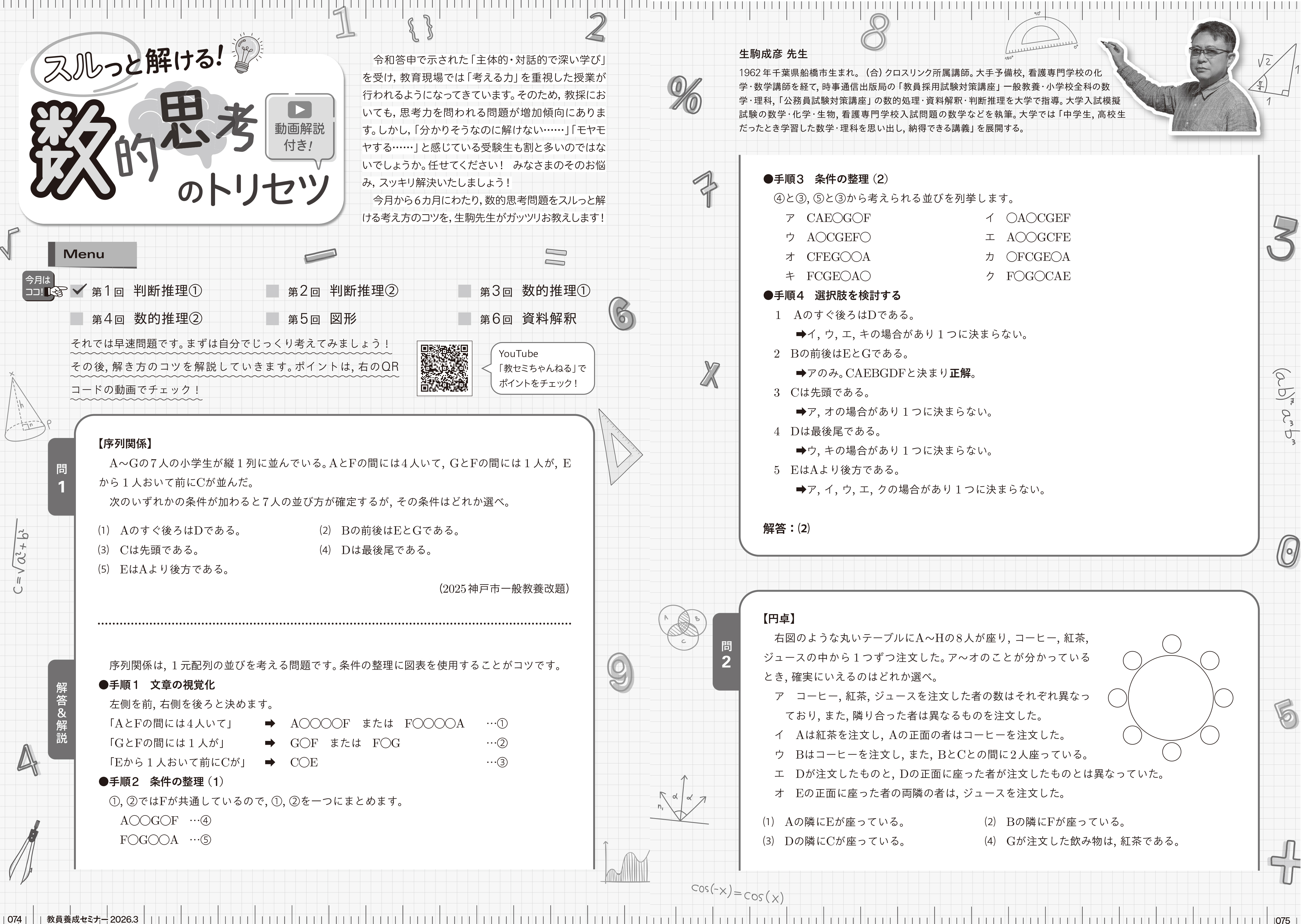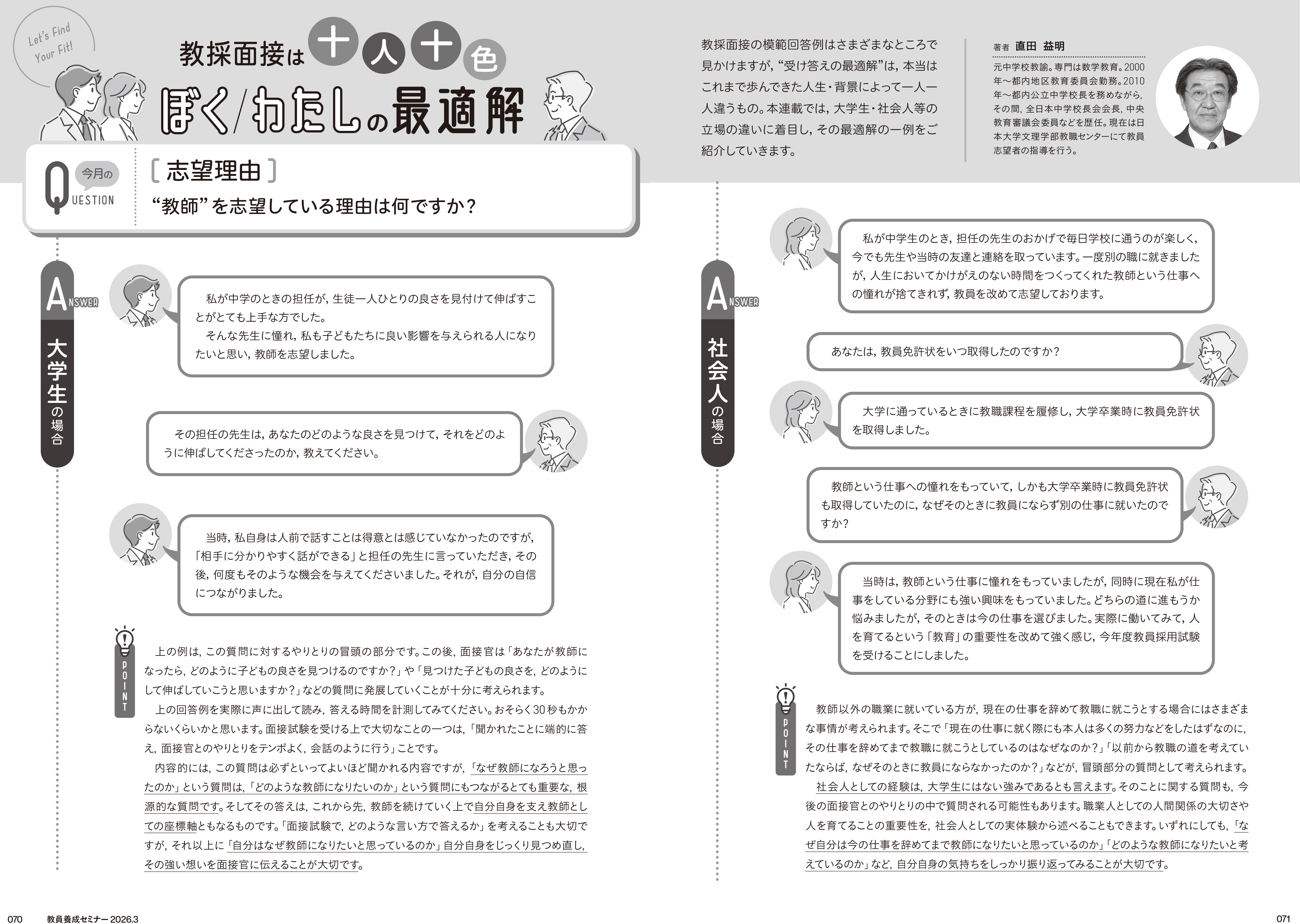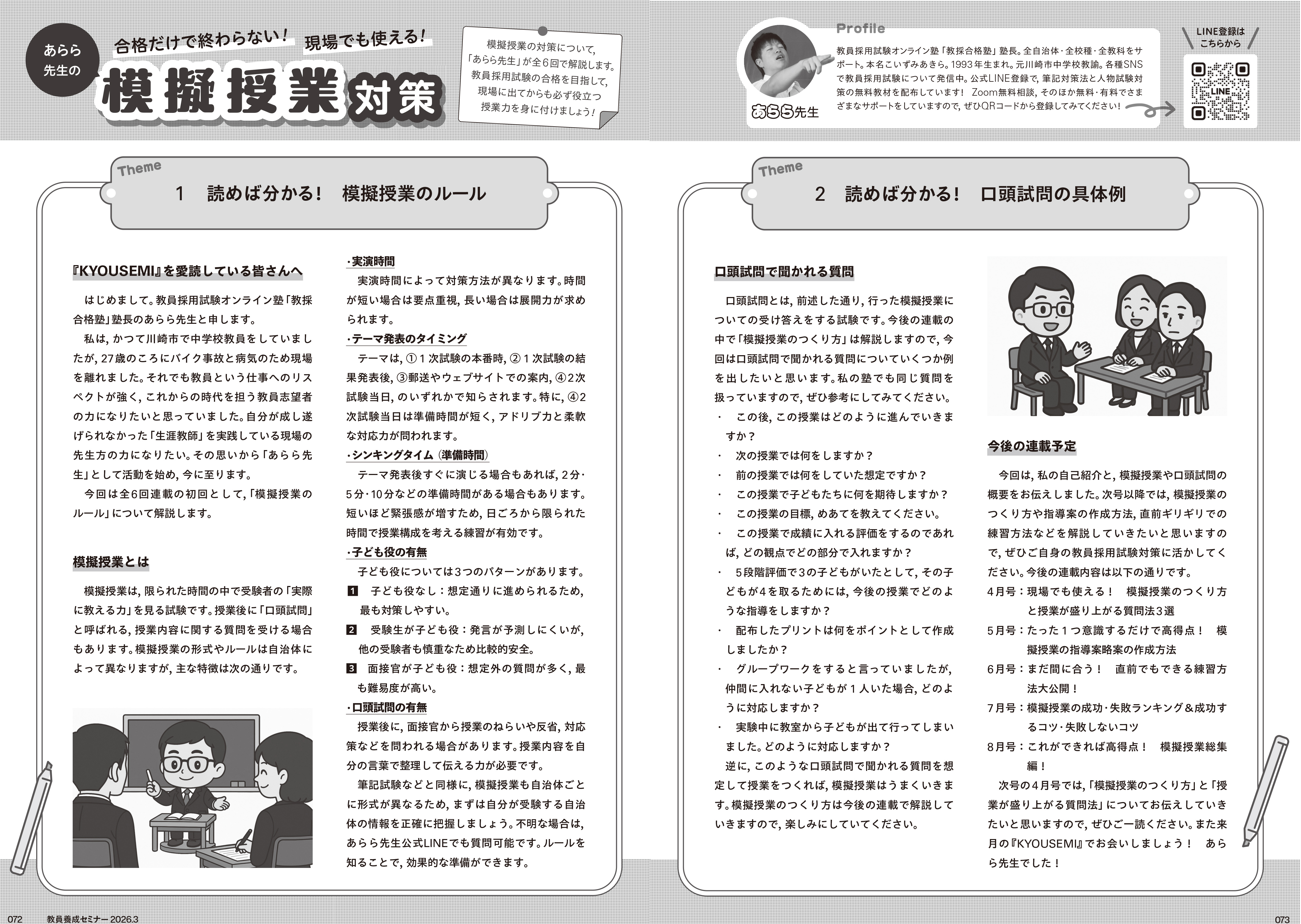 さらに、教採受験者を長年指導してきた甲南大学の先生方にもご登場いただき、とっておきの教採対策法を伝授していただきます。