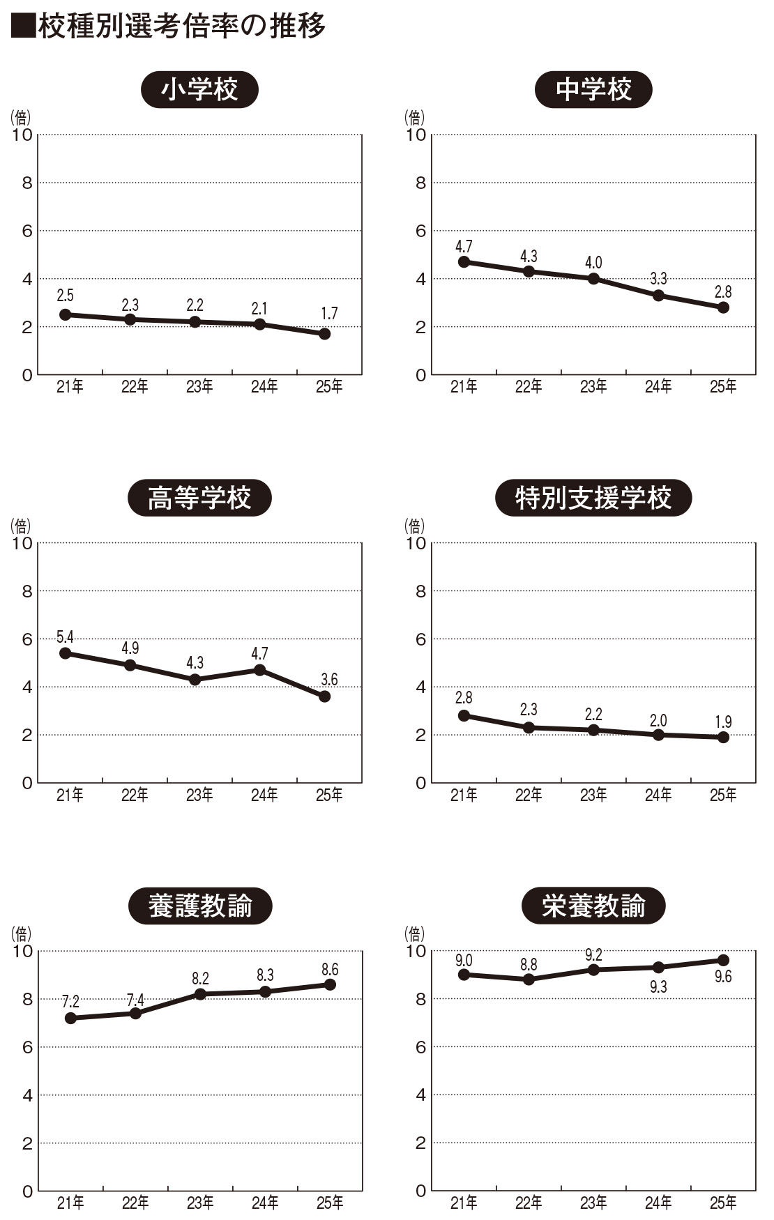 2025年実施教員採用試験 自治体・校種別倍率一覧