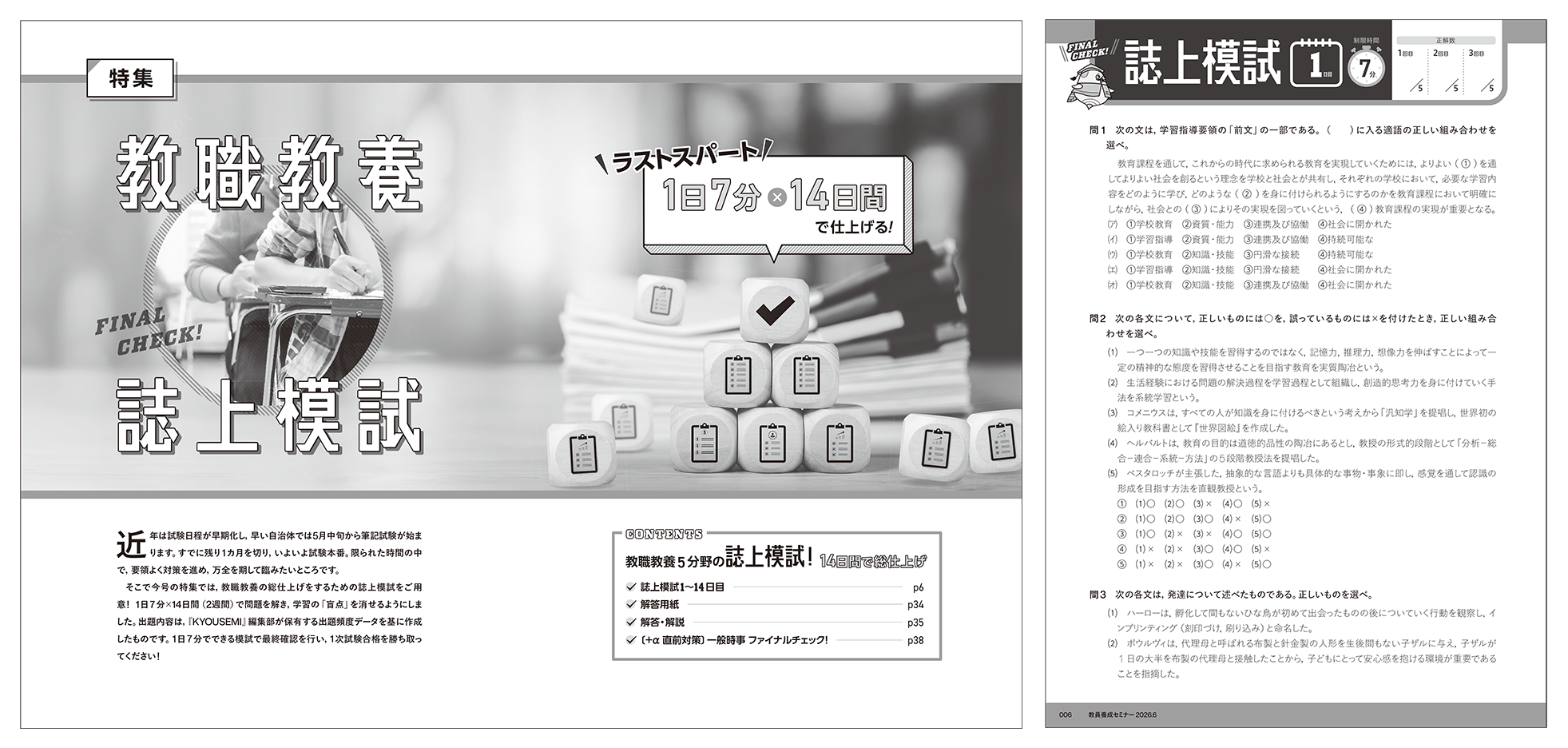 特集 ラストスパート 1日7分×14日間で仕上げる! 教職教養 誌上模試
